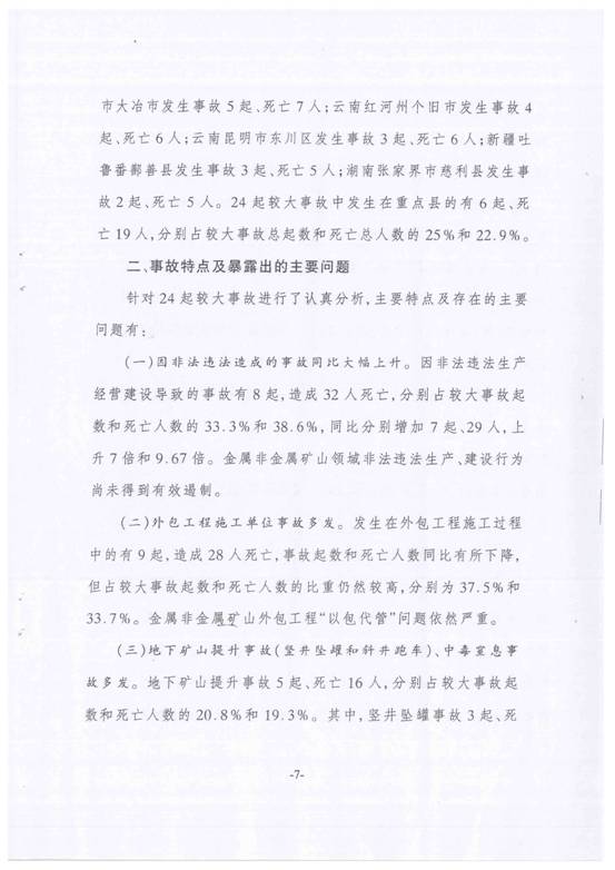今年以來非煤礦山生產安全事故情況的通報
